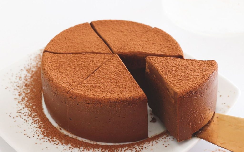 The chocolate will melt slowly and thicken, removing it from the heat once it bubbles. Prepare a container, round or square and brush the inside with oil, then pour the chocolate batter into the container and smooth the top with a spatula. Cover the top with plastic wrap, keep the wrap on the surface, then chill in the fridge for 4 hours or overnight. Remove the plastic wrap from the refrigerator after 4 hours, then invert the cake on a plate.