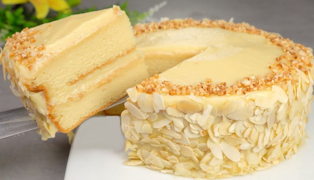 This easy-to-bake cake is one of the most delicious cakes you will ever eat. The cake is topped with roasted almond slices it is an amazing combination for a sweet and delectable pampering. Start by baking sliced almonds in a baking tray at 180 degrees Celcius for 8 minutes. Once baked, take it out of the oven and let it cool.