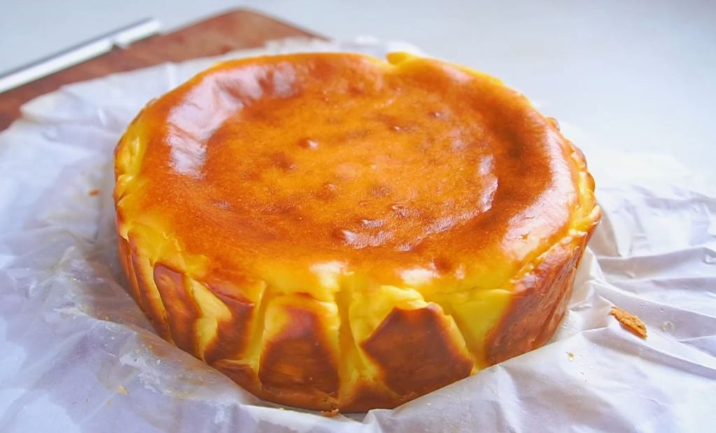 This cake is also known as burnt cheesecake. Because of its two different consistencys, it will be the most delicious and fun cheesecake you will ever eat. If you eat it at room temperature, it is custardy and delicious and melts in your mouth. If you pop it in the refrigerator for the next day, it will harden and become the creamiest cheesecake you will ever taste.