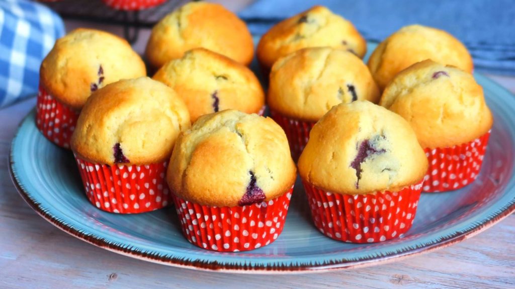- Add milk mixture to the bowl with dry ingredients then use a fork to combine. Do not over-mix. Fold in the blueberries.