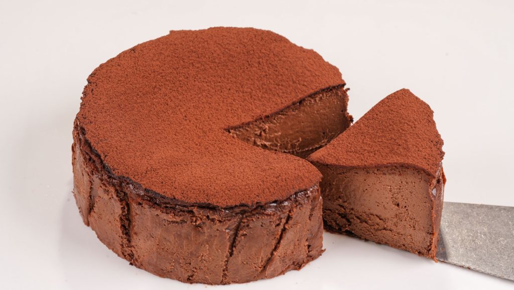 Bake in the oven for about 60 minutes until it rises and looks like a souffle. Once baked, remove from the oven and let it cool down; once cooled, free the cake from the springform pan and place the cake. Dust the top with sweetened cocoa powder and serve.