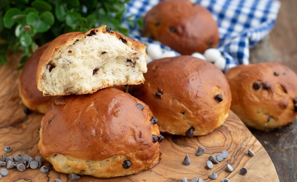 These sweet small buns with chocolate chips are super delicious. They are very popular in Italy and you can find them in a lot of bakeries, the recipe is simple to make at home. Start by placing half a cup of chocolate chips in a freezer then prepare a water roux which is made by heating some water or milk with flour. Into a saucepan over medium heat, add 100ml of milk and 20 grams of flour then stir as it heats up until it becomes a thick paste then remove from the heat and let it cool down to room temperature.