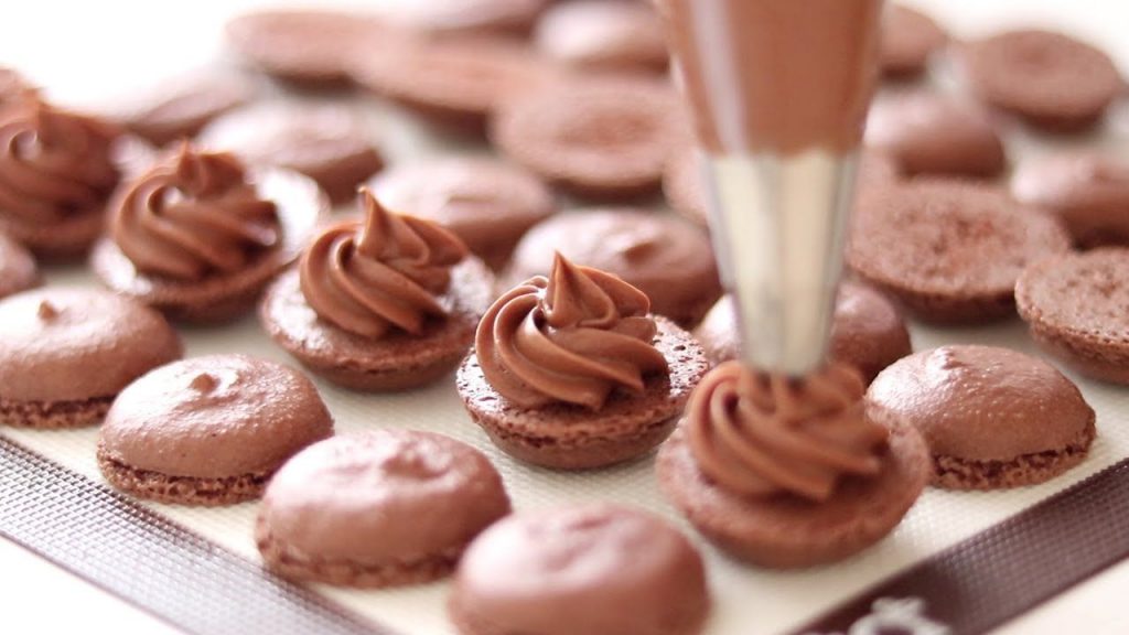 - Transfer the ganache filling into a pastry bag and fill the macarons.