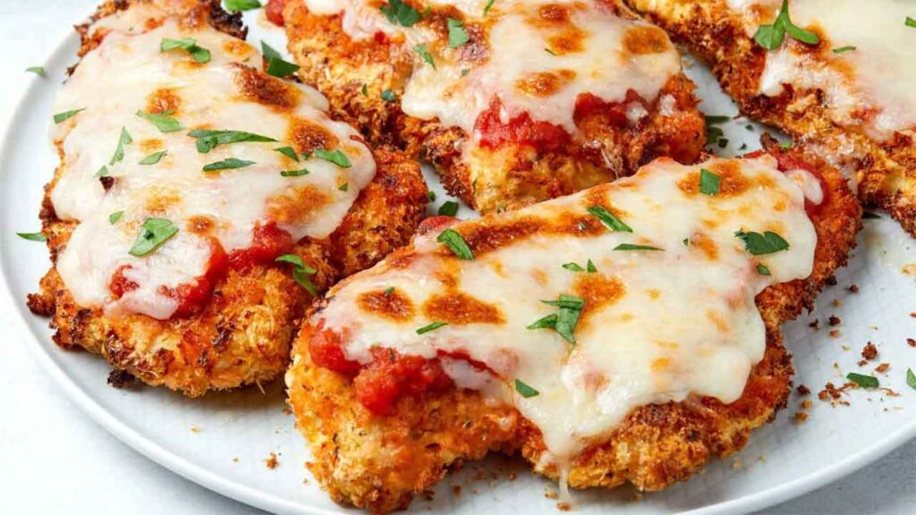 To bread, the chicken, dip the first cutlet in the flour mixture and tap off excess then transfer to the beaten eggs and then to the cheesy breadcrumbs pressing the cutlets into the breading to ensure a thick even coating of crumbs and make sure your bread both sides.