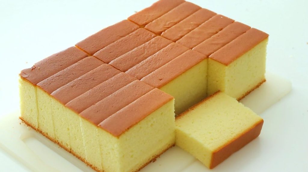 The total baking time should be 60 minutes. Bake until the top of the cake is golden brown. Once baked, grease a silicon sheet and top the cake then quickly turn it over and remove the parchment paper. Let the cake cool down for at least one hour before serving but the best way to eat this cake is after a day. Cut the edges and slice the cake into the shape you want. Serve the cake with tea or milk and enjoy,