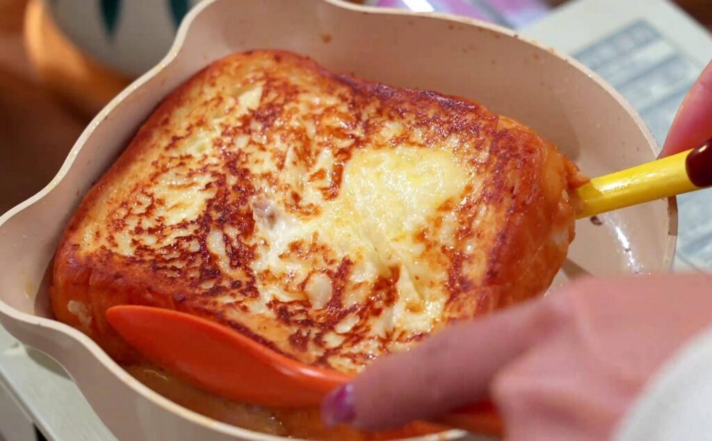 What makes it truly indulgent is the butter-milk glaze—a decadent mixture of sweetened condensed milk, unsalted butter, and fresh milk, brushed over the toast while it’s still warm so it melts in.