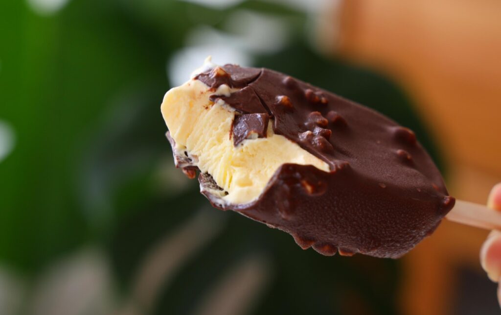 - Double Chocolate – Add 2 tbsp cocoa powder to the ice cream mix and use milk chocolate for the shell