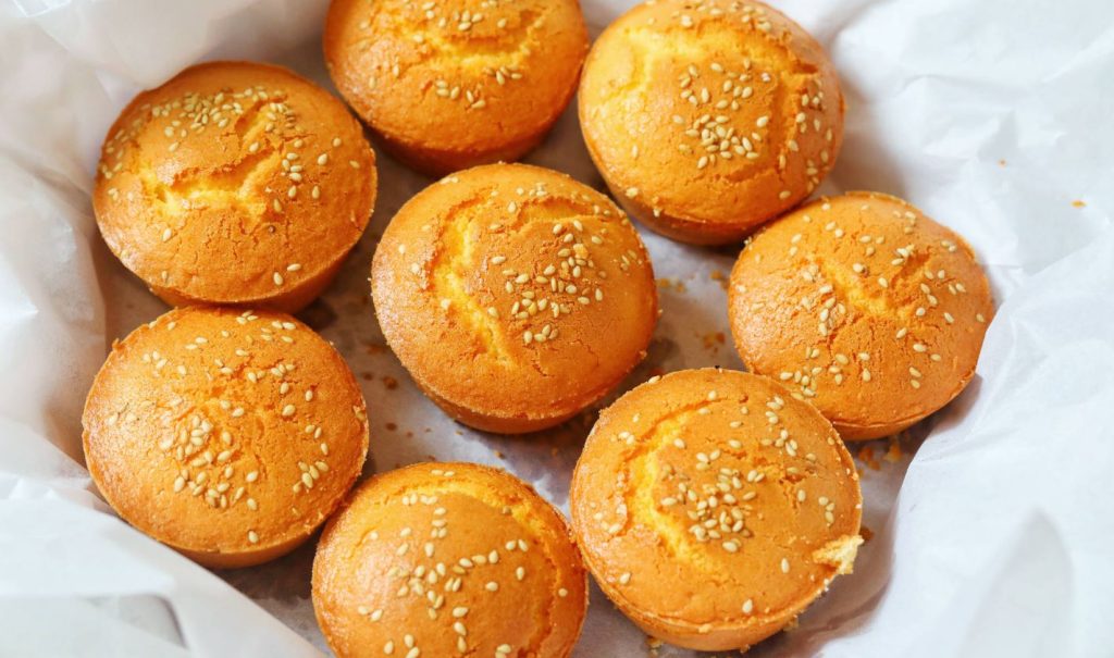 Pour the batter into the prepared cake tin/ cake moulds and top them with sesame seeds( optional) and bake in a preheated oven at 170C( 338F) for 15 minutes then reduce the speed to 160C( 320F) for 35 minutes. Once baked, let the cakes cool in the moulds or pan then remove them onto a plate and serve. You can also wrap them after cooling them completely and serve them the next day. Enjoy.