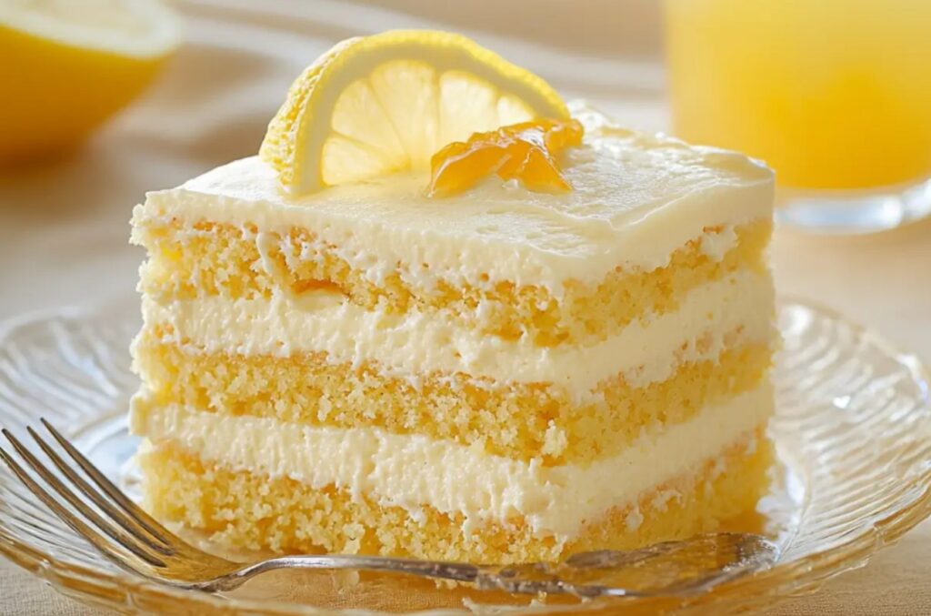 Use a pastry brush or spoon to ensure even soaking. Spread half of the mascarpone cream mixture over the soaked cake layer. Use an offset spatula for a smooth and even surface. Repeat with the Second Layer: Place the second cake layer on top, soak it with the lemon syrup, and spread the remaining mascarpone cream evenly over the surface.