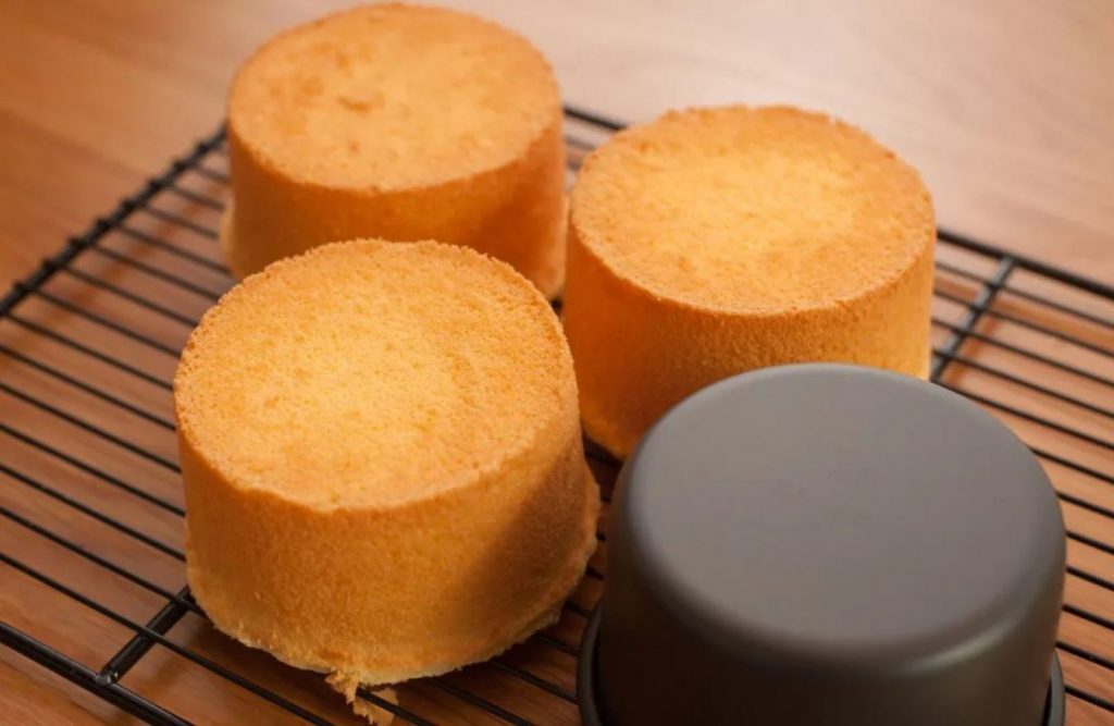 Tap them on the counter to eliminate any trapped air in the batter. Bake in a preheated 160 degrees Celsius oven for 30 to 35 minutes. Once baked and out of the oven, let the cakes cool down before removing them from the pan.