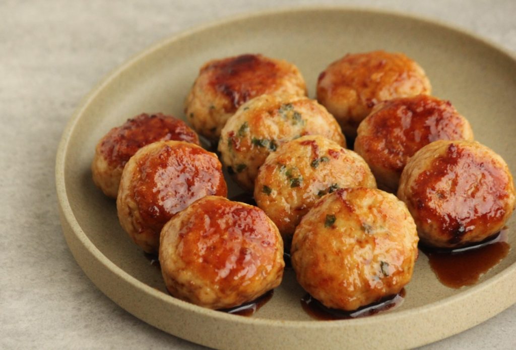 Use your hands or a spoon to mix everything until it’s well combined. The soy sauce will add a savoury flavour and keep the meatballs moist. Wet your hands to prevent sticking, and shape the mixture into small balls, about 1 inch in diameter. You should end up with around 20-25 meatballs. Making them uniform in size helps them cook evenly.