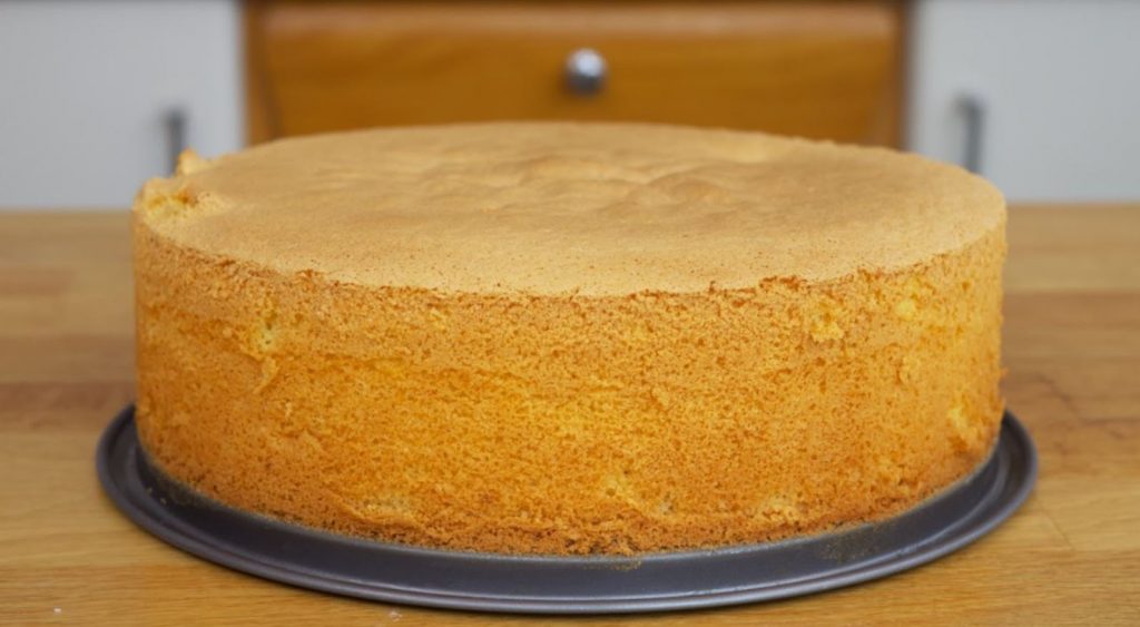 Tall, flat, tasty, airy but perfect is the way to describe this sponge cake. You can use this recipe for all cakes but it is the best for fruit cakes. Prepare 6 eggs and separate the whites from the yolks then into a stand mixer, add in the egg whites. Start whipping the egg whites and when they start to foam, add sugar slowly in three additions.