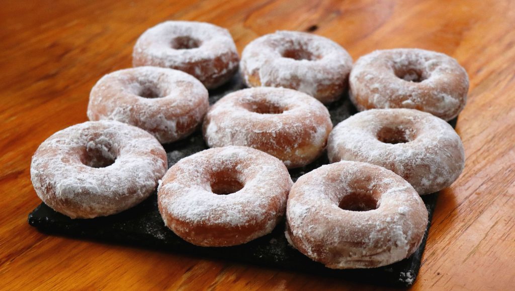 To gently fry the doughnuts, put them in the oil and don’t overcrowd the pot. It will take 30 to 60 seconds per side for the doughnuts to fry to a golden brown. Then, remove them from the oil and place them on a paper towel-lined plate. Cover the cooked doughnuts on a plate with granulated white sugar until very well coated, then serve warm. The outside of these doughnuts is nice and crisp, and the sugary coating is out of this world.