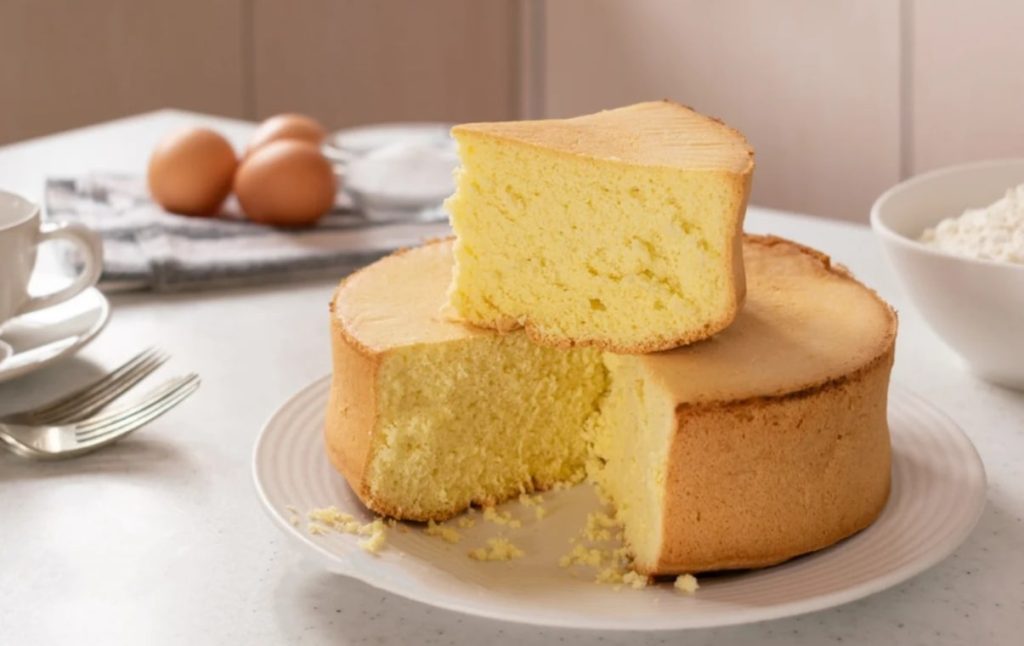 Baking can be crazy easy when you just need three ingredients. This sponge cake requires only three ingredients, it’s super simple you only need eggs, sugar and flour. You will start by adding 5 eggs into a mixing bowl and sugar then place it in the mixer with then whisk on and you will start it slowly and then increase the speed as you go.